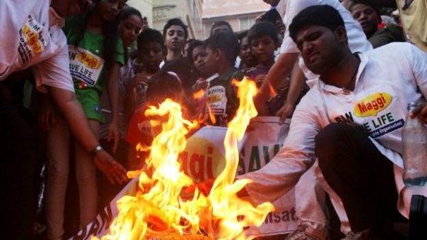 nchini India zilikokuwa zikiuzwa.Kulikuwa na aina tisa ya ''Maggi Noodles'', bidhaa iliyotokea kushabikiwa na walaji wengi hivyo kununuliwa kwa wingi.Bidhaa hiyo inashikilia asilimia 80% ya soko la tambi nchini humo.